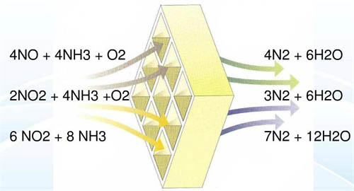 選擇性催化還原SCR(Selective Catalytic Reduction)是目前國(guó)內(nèi)外主流高效去除尾氣中NOX的技術(shù)路線。主要針對(duì)煙氣中的NOX ,在一定溫度(一般為400℃-500℃)范圍內(nèi),催化劑將NOX分解成無害的氮?dú)猓∟2) 和水(H2O)。
